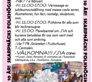 Välkomna på SIAs IO-årsjubileum på Serieteket!!! -När? 7:e februari. -Kl. 11.00-17.00: Vernissage av jubileumsutställning med massa coola serier, ...