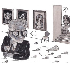 Utställningen fördjupar sig i David Liljemarks burleska serie "Besök av Jesus" från 1992. De två sidorna ...
